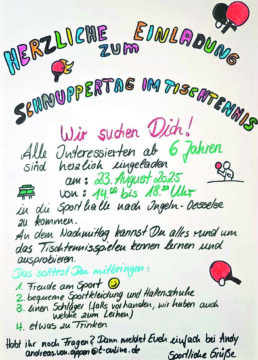 23. März 2026Tennis-Abteilungsversammlung 2026Haupt,TennisRead More 19. März 2026Neues Angebot am Donnerstag: Line DanceAllgemein,Haupt,Frauen-FitnessRead More 19. März 2026Weltweiter Qigong-Tag am 25.04.Haupt,AllgemeinRead More 23. Januar 2026Tenniscamp 2026Haupt,TennisRead More 23. Januar 2026Arbeitseinsatz 2026Haupt,TennisRead More 23. Januar 2026Tennis Termine 2026 & Einladung zur MV 📅Haupt,TennisRead More 20. Januar 2026Sei dabei!Haupt,Tischtennis-Jugend,Allgemein,TischtennisRead More 16. Dezember 2025Rückblick auf die TT-HinrundeAllgemein,Tischtennis-Jugend,Haupt,Tischtennis-Erwachsene,Tischtennis,Beitrag auf FacebookRead More 30. August 2025News aus der TT-AbteilungHaupt,Tischtennis-Jugend,Allgemein,TischtennisRead More 19. August 2025Tischtennis-Schnuppertag für KinderHaupt,Tennis-Jugend,Allgemein,TischtennisRead More